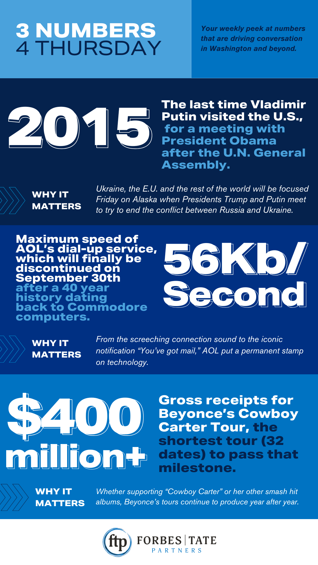 Putin comes to America, goodbye dial-up, and Beyonce’s big summer…