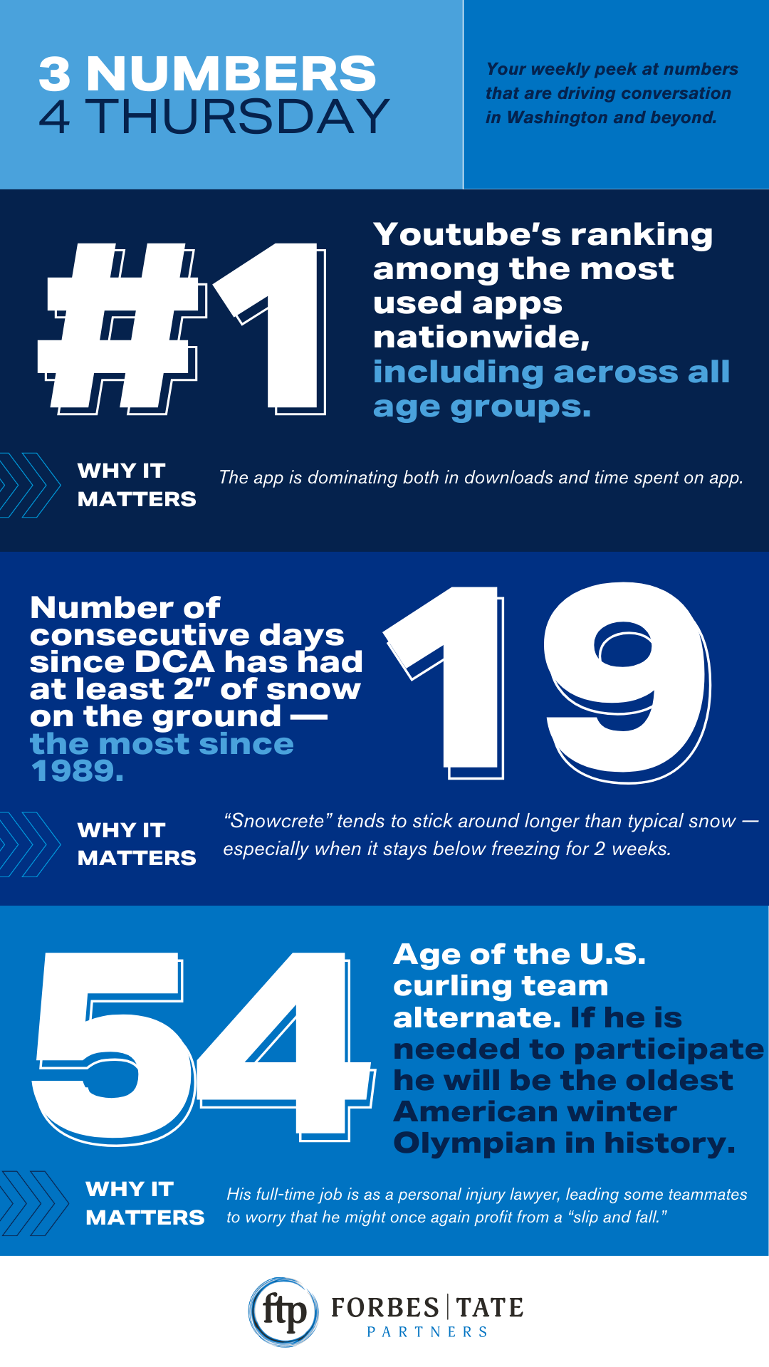 Forbes Tate Partners is a bipartisan, integrated full-service public affairs consultancy specializing in government relations, traditional and digital communications, grassroots advocacy and third-party coordination, insights and polling, coalition management, and business development. FTP can help you develop and deliver winning strategies to communicate and engage your key audiences.